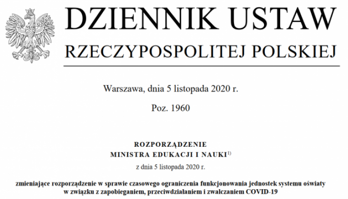 Nauka zdalna w szkołach podstawowych i średnich zostaje przedłużona do 29 listopada. Od poniedziałku zdalnie uczyć się będą również uczniowie klas I-III podstawówek - wynika z rozporządzenia ministra edukacji i nauki opublikowanego w Dzienniku Ustaw.