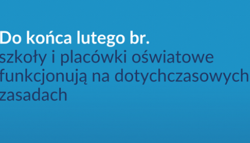 Od poniedziałku, 1 lutego br. obowiązują dotychczasowe zasady funkcjonowania szkół i placówek. Zmienione zostały rozwiązania o organizacji nauki zdalnej na terenie szkoły, wprowadzono możliwość organizowania tzw. próbnych egzaminów szkolnych na terenie szkoły.
